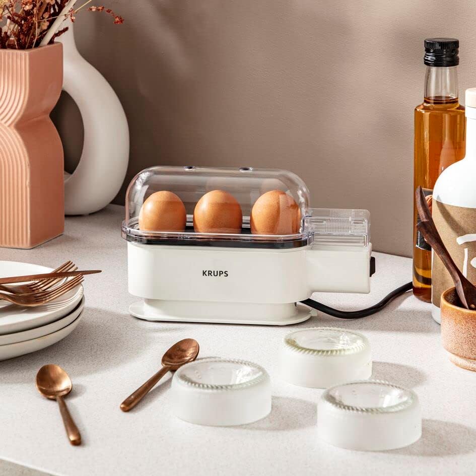 Проста та функціональна яйцеварка німецької фірми Krups підходить для приготування від 1 до 3 яєць. Корпус виконаний із пластику високої якості. У комплекті із мірною склянкою для використання необхідної кількості води.